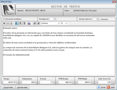 Módulo similar a un editor de textos convencional para practicar con la copia de cualquier texto y practicar la creación de diferentes tipos de documentos.