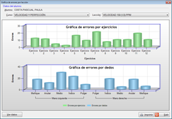 Comprueba los resultados de cada lección en una única pantalla: resumen de los ejercicios y de la lección, errores por manos, errores por letras, errores por filas y acceso a las gráficas de resultados.